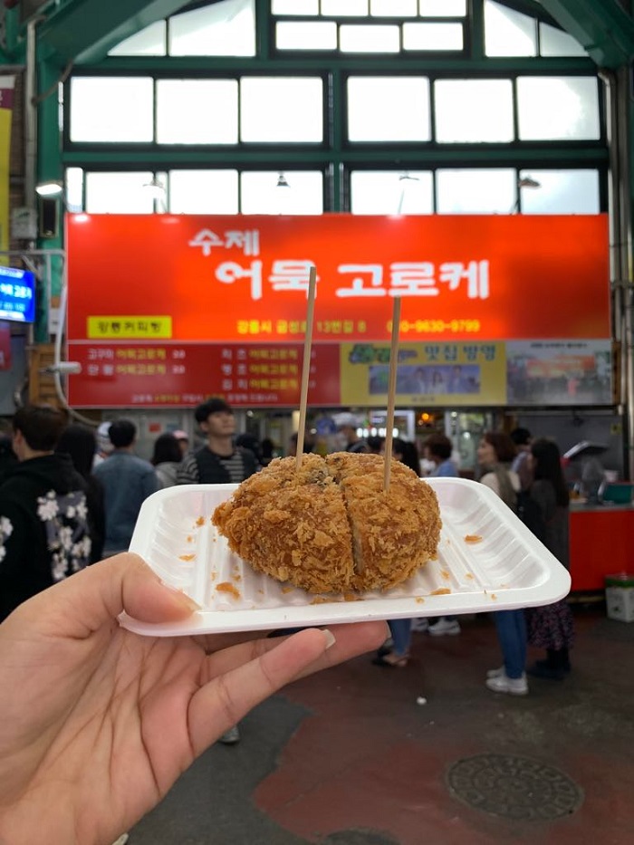 这里是江原最古老的市场-Jungang Market,最好吃的煎饼(Hotteok)配上冰淇淋或者cheese,确实很让人惊艳啊!你你可以在Tourist Information Centre领取10,000won的礼券,你可以在Jungang Market里购买任何美食,钱花不完也没关系,因为店家会给回你现金,是不是很好啊?!变相地送钱给你买吃的。