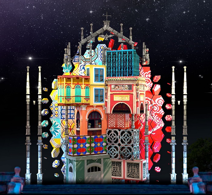 大三巴牌坊上演的光雕表演包括:西班牙团队创作的“Bloom”(“绽放”),凸显大三巴牌坊建筑之美,展示澳门的独特文化,透过描绘大自然各种元素的持续成长,表达诞生的美好及繁荣景象,配乐揉合传统中国及葡萄牙乐器与现代音乐,营造欢乐多彩的氛围; 来自粤港澳大湾区城市深圳的团队将带来“小雪花历险记”,故事由一片小雪花的冒险之旅展开,小雪花飘过美食、搭乘跑车、穿梭瑰丽的教堂,一路上发现惊喜,为澳门献上梦幻的贺礼;澳门团队创作的“时光庆聚”,以缤纷色彩结合活泼线条及图案,配上轻快激昂的原创乐曲,呈现澳门昔日渔村的小城故事、文化共融的城市风景及20 周年的喜庆时刻。