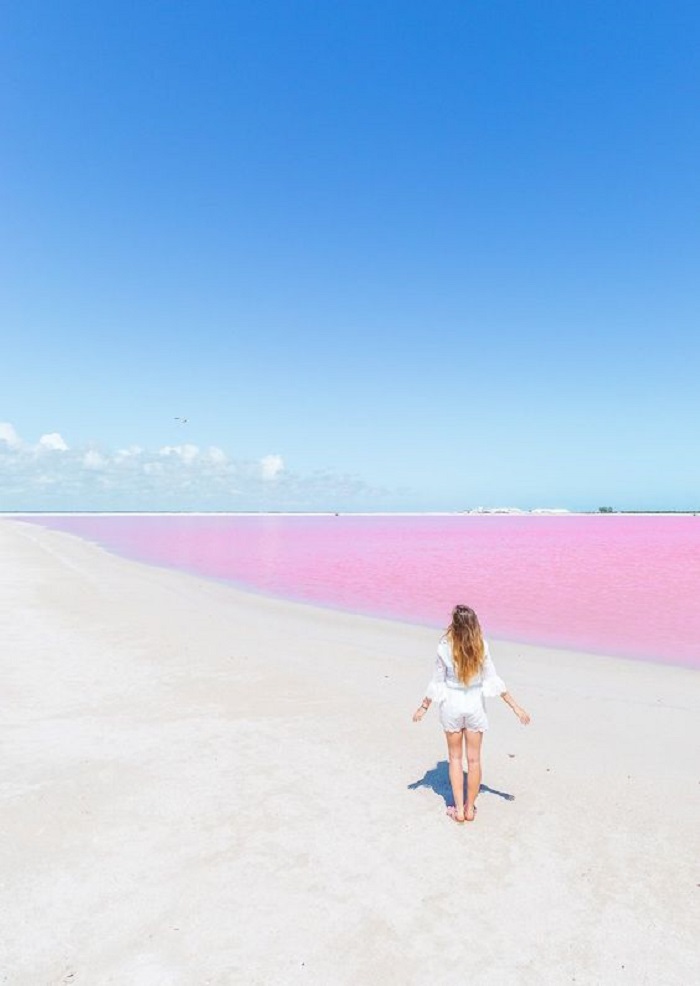 粉红湖实际上是一个盐湖,呈现的粉色是湖中的微生物,藻和盐水虾的颜色,在不同的季节会呈现不同的颜色。据说这里的粉湖之所以是粉色的是因为它里面含有大量的盐成分,所以不让游客碰水的原因除了会破坏盐的生态环境,还有另一个原因是盐湖含盐成分太高了会伤到皮肤。