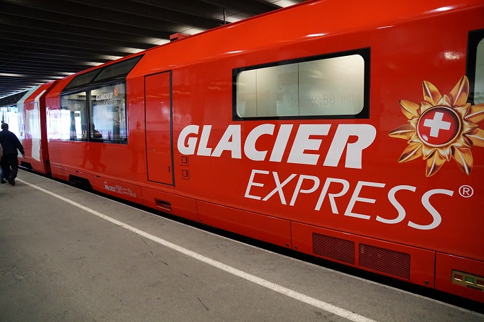 从Zermatt乘坐冰川列车到St Moritz,车程大约8个小时。虽然旅途很长,但是你可以欣赏到沿途漂亮的景色,路过阿尔卑斯以及山下的湖泊、陡峭的悬崖和原始森林,你可以沉浸在窗外美丽的风景中。欣赏纵深的峡谷,这些峡谷的石头结构被水流塑造出了奇形怪状的形状。列车上也有提供餐饮服务,不过需要提前预订。