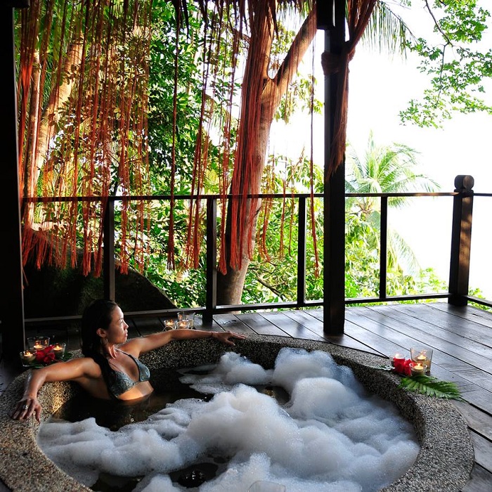 很适合情侣去度蜜月哦!你可以去Avi Spa里头的lounge喝茶看海景。我上次入住的是water chalet,露天的沐浴区更添情趣哟!