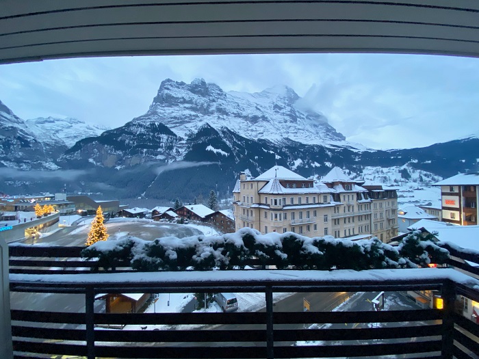 从阳台看出去的艾格峰(Egar)山景更是满分,有种夫复何求之感!我在入住的第二晚,天气晴朗得吓人,即便已经入夜,山景依旧清晰可见。