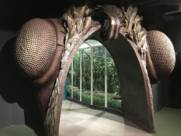 除了蝴蝶,这座模拟的生态园也有着不少小昆虫、无脊椎动物及小型爬虫类。走着走着,莫名就发现变色龙在某处盯着你,蜥蜴在你旁边的玻璃柜内休息,大蜘蛛在你头顶上的洞穴织网。。。如果遇上『昆虫展示时间』,还能体验把大蝎子或大蜘蛛捧在手心上呢!Hmm,小编表示还是去当香妃与蝶共舞好了,蝎子和蜘蛛留给五毒教主蓝凤凰好了XDD