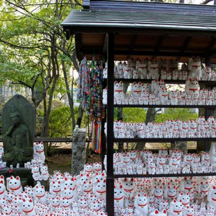 日本的招财猫世界闻名啊!你知道吗?招财猫也有神社哦!位于东京世田谷区的豪德寺,是招福猫的发源地,与浅草的今户神社、新宿的自性院并列为东京三大猫神社。豪德寺的招福堂里放满了数以千计的招财猫。