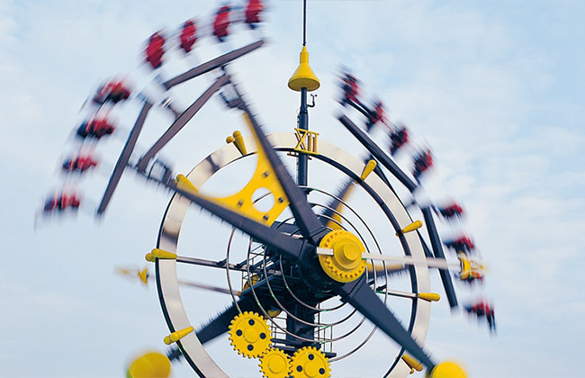 使用的是双座椅摆动,在高度为59m的钢塔周围旋转并且重复上升下降。