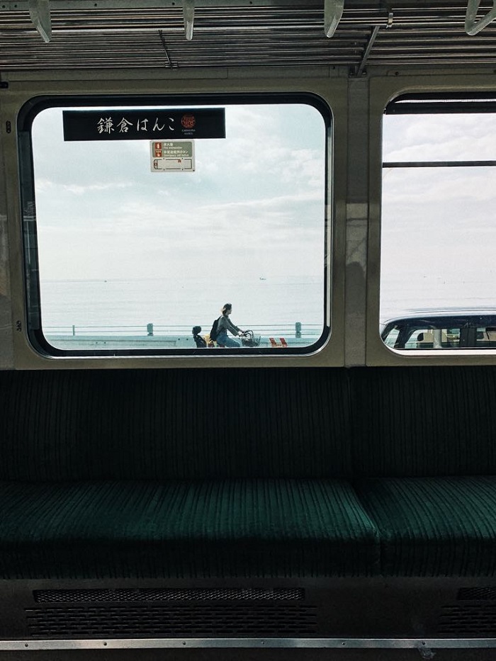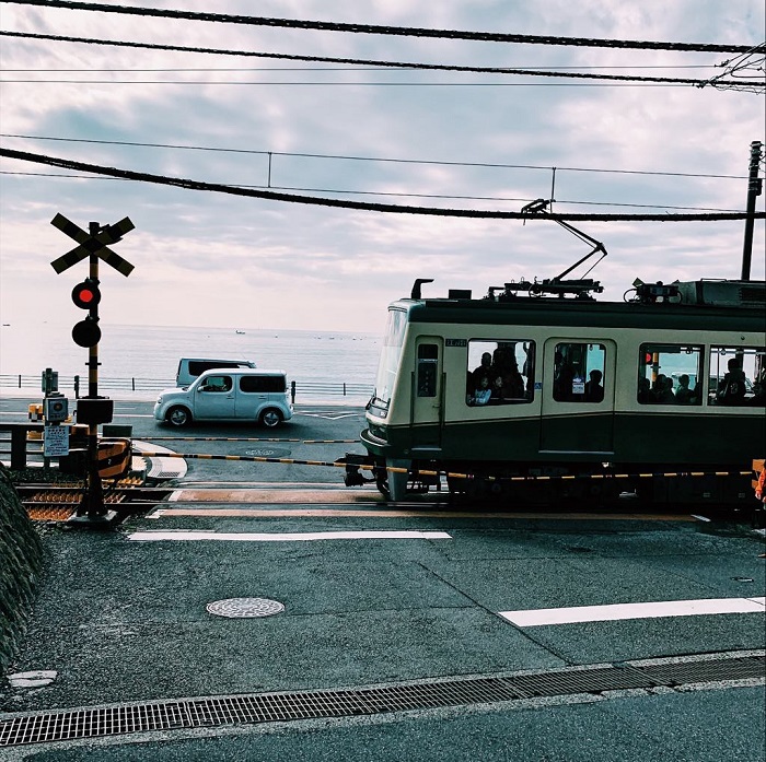 对于镰仓,大家第一印象就是《灌篮高手》片尾曲《想大声说我爱你》,樱木花道和赤木晴子挥手的路口,流川枫骑单车的沿海公路。日本旅游迷都知道,看镰仓,最好的就是乘坐江之电,从镰仓站一直驶向海边,穿过无数平交道的铁道路口,穿过了海边,坐在车厢上面向海,感觉特别疗愈。