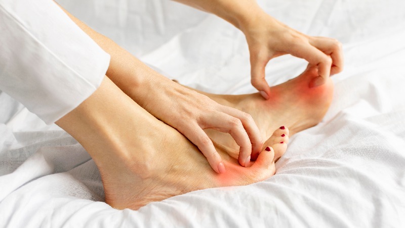 洗澡后除了身体也要彻底擦干足部,保持干爽之后才穿袜子穿鞋子。带湿的足部就像下雨弄湿了鞋子,水气憋在里头时间长容易导致真菌滋生,诱发香港脚。