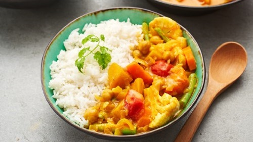 3.在最后的15分钟,加入椰奶和鹰嘴豆,以糖和盐做调味后即可上桌。