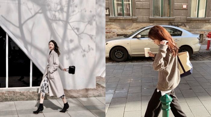 说到街拍,怎么能少了这种「大步走路的照片」!但在人多的地方能有大步走路的机会很难得,一定得靠「侧面连拍」来一次完成。除了侧面连拍,主角也可以边走边回头看镜头、随意拨动头发,注意脚步一定要自然跨大,拍出来的成品才会好看!