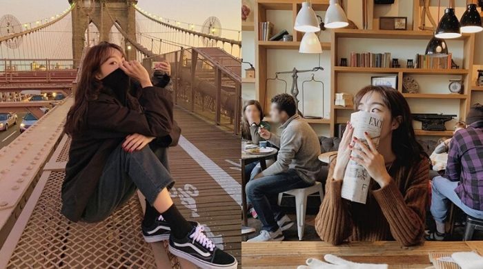 没办法避开一堆人的背景,例如在餐厅或者桥上这种场景的话,最直接的方法就是让自己变得特出与众不同。这时你可以装可爱遮眼睛、装高冷遮嘴巴、装被天气冻坏了遮脖子下巴等等,反正把你漂亮的部分五官show出来就好。