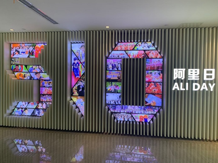 2.5月10日是阿里日,在这一天,员工们都会邀请亲友来到园区感受阿里文化,并且在这里举行集体的婚礼,共有102组新人会在这里举办婚礼哦!