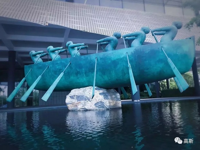 愚人船- 这个雕塑,每个人在奋力摇桨、但因为用力相反,船始终“静止不动”,如果没有团队合作,就算是一群聪明人,也会像一群愚人在划船。 所以雕塑的名字叫“愚人船”!