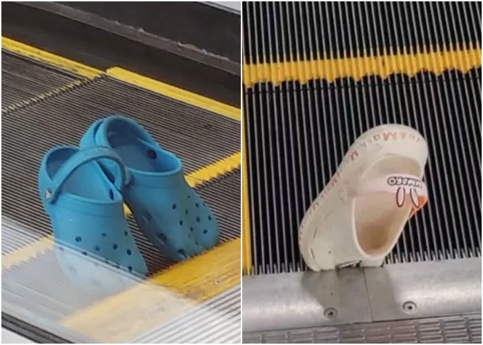 我们也没少听闻过电扶梯「吃脚」的新闻,这其实是因为洞洞鞋十分柔软加上摩擦系数小,只要太靠近手扶梯的边缘,就会发生「被吃掉」的情况,加上因为鞋子太宽松,我们的脚来不及感受危机作出反应,经常发生意外的时候都几乎来不及,所以出门在外的话,还是避免穿洞洞鞋为佳。