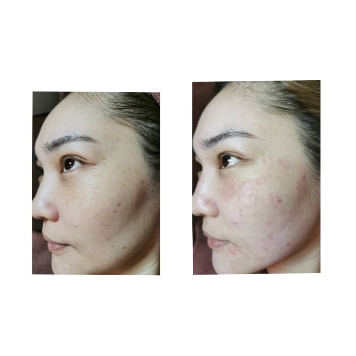 打完前后的对比,除了明显看到做完之后肤色提亮一个level,针对色素的部位也有淡化。即使打完后呈现泛红的状态,仍然肉眼可见的平滑感。PicoSpot皮秒激光是说明一次也能看到效果的疗程,果然说到做到。
