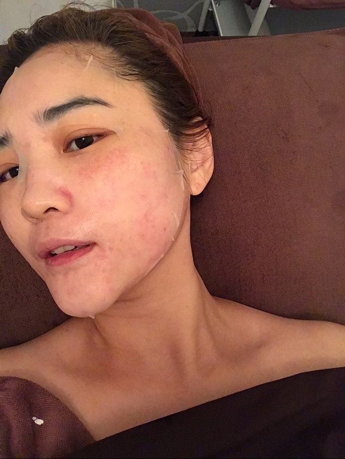 因为是皮秒激动仪器,所以开始前美容师会给我戴上眼睛,避免激光刺激眼睛。接着探头就会在我全脸移动扫射,基本上算温和接近无感,也可能是麻醉药起的作用。就是脸颊两边的雀斑在加重波长时会有轻微刺痛,类似被橡皮筋轻轻弹的感觉,但就是完全能接受。