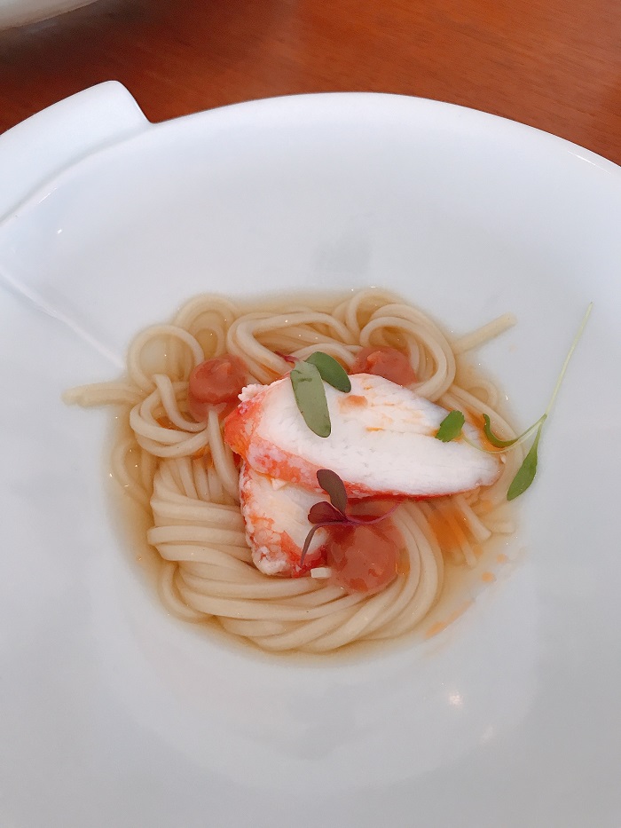看似简单平凡的冷面,在厨师巧妙地融入帝皇蟹肉,提升了整体的形色。无疑,精致新鲜的食材,从视觉到味蕾都充分让人享受一场属于美味的奇妙旅行。