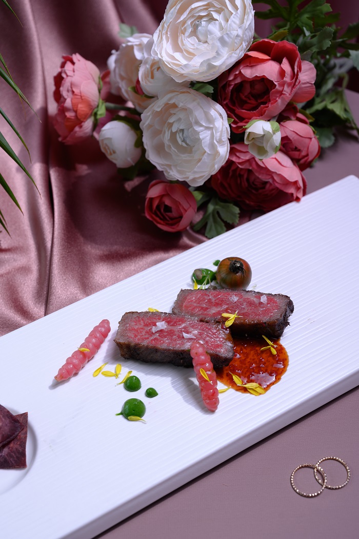 同样也是由Nobu KL的行政主厨Chef Philip Leong带领团队创造的7道情人节套餐,从前菜到甜品都给情人们满满的仪式感,让静谧浪漫的空间里全都流淌着幸福的味道。Valentine Omakase套餐每位收费为RM550++,食材有鹅肝、神户牛、帝皇蟹、鱼子酱、生蚝等。记得提前预约,运气好还会被安排到靠窗的位置,全程有KL最美的城中夜景陪着你用餐。