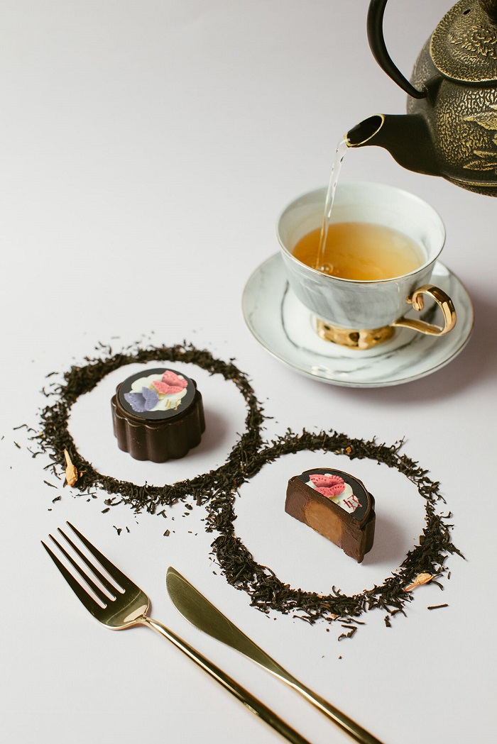 堪称是首个以巧克力为主角的月饼,以Midnight Blossom为主题,月饼的外观就是黑色为主调色,再配上精致的花卉图案,好有气质哦!