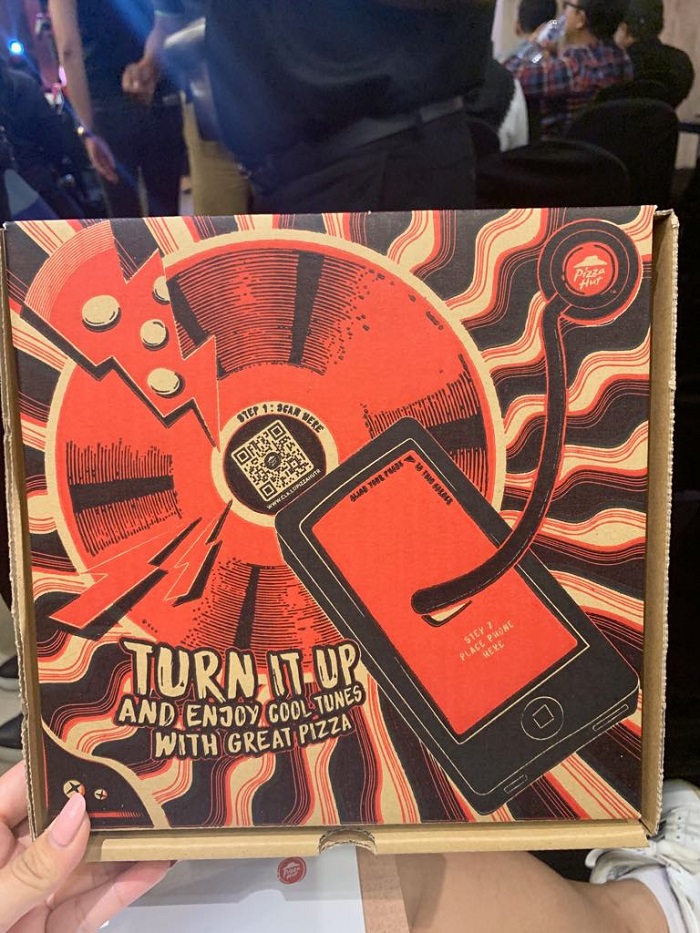 披萨盒子:选择外带或外送速递的顾客可扫描披萨盒子上的特制二维码,并透过手机播放特制歌单。