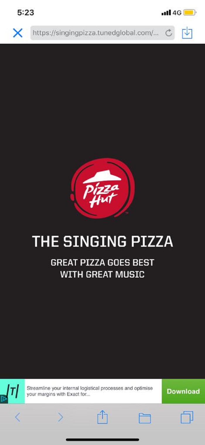 Pizza Hut 要运用前卫手法将披萨与娱乐结合在一起,让每一口披萨都充满愉悦享受。“The Singing Pizza”善用披萨盒子(音乐盒)来改变马来西亚人享用披萨的方式,带给大家更多欢乐及惊喜。