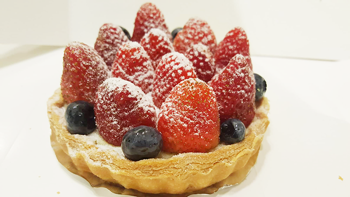 法式面包外皮,内陷是莓果口味的起司,入口就只有香!(隔着荧幕仿佛也闻到了麦香!)