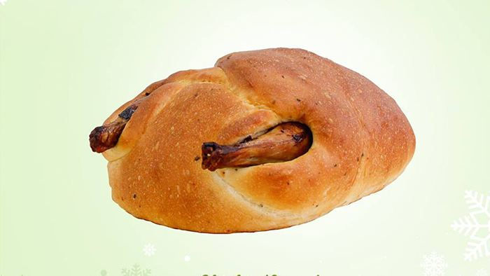 巨大的面包鸡!这可不是一般的咖喱面包鸡哦,里面包裹着的是完完整整的一整只烤全鸡,嫩滑的鸡肉配上胡椒香,是圣诞聚餐必备款!不过Belle子温馨小提醒,这是需要预定的哦!毕竟从备料到出炉都需要好几道程序,是道“功夫面包”来着。