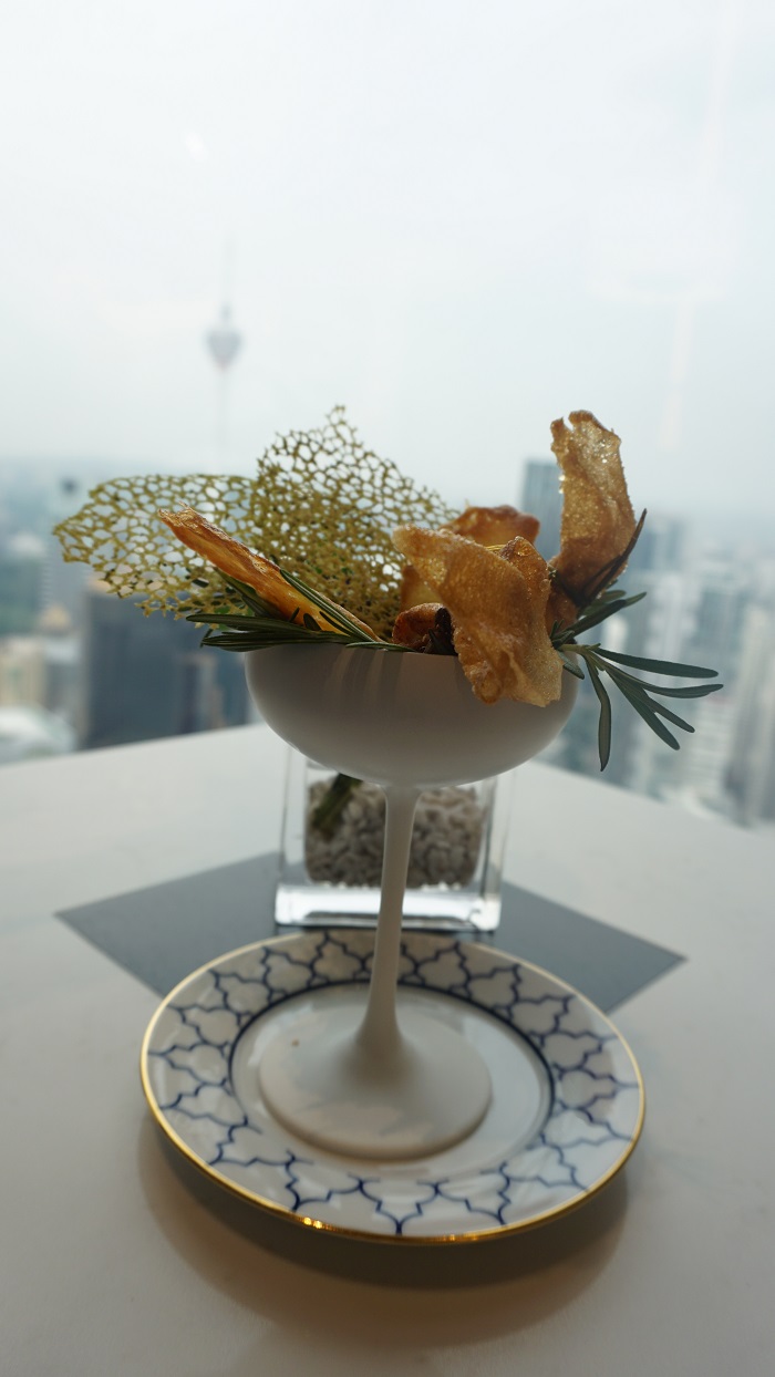 位于Banyan Tree Kuala Lumpur第53楼的Altitude餐厅,主墙是黑色的大理石纹,很有格调,服务员的暖心笑容,就是最好的待宾接客的方式。Altitude的入口处就有茶具摆设柜,精致的茶具更显高贵。往前走,左手边是对着KLCC和KL Tower的座位,右手边则是吧台和酒库。我们当天选择的位子就是刚好面对着最漂亮的吉隆坡景色,点了咖啡之后,和闺蜜们第一时间就是拿起手机,拍下这漂亮的风景。