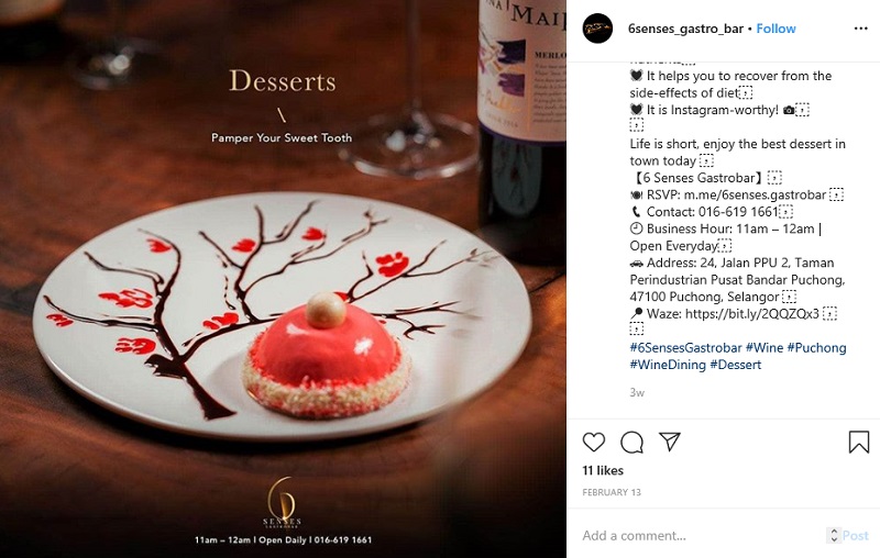 外形非常有气派的6 Senses Gastrobar属于一间红酒吧餐厅,里头的气氛极为Chill,酒的选项不让人失望,不管红酒白酒甜酒都应有尽有。食物方法也是各种适合配酒的海鲜、红肉、薄饼等等,最适合约会聚餐。另外里头有个超豪华的私人包厢,搞生日会周年庆会让你的宾客打卡拍照拍个过瘾。