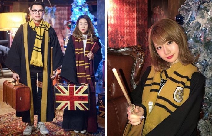 其中一层还贴心提供了不少道具如魔法袍、围巾、皮箱、魔法扫帚等等,每一个人都能变身霍格沃茨魔法学校的学生。