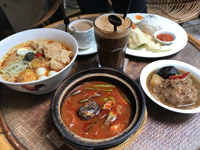 一定要说的是,这里有全马13州的咖啡哦!每一个州属的咖啡特色不一样,最让我们喜欢的是Johor的咖啡和Malacca的咖啡。如果你不喝奶,可以选择kopi o,味道也一样好喝哦!至于食物嘛,我跟你说,他们家的Nyonya Laksa和Ikan Asam Pedas真的是让人流连忘返啊!装潢方面是马六甲特色的复古风,室外的空间就会比较热一点,如果不习惯热天气的人,可以选择坐室内哦!