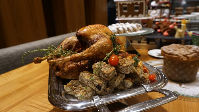 这一次我自己先来品尝一下今年Sheraton PJ所推出的圣诞大餐!圣诞主题的晚餐自助餐由Feast餐厅提供,从12月17日至30日,价格从RM118(成人)和RM59(5岁至11岁儿童)起。各国料理都能在这里找到哦!当然,大家一定会好奇,自助餐那么多,那到底有什么特别的食物嘛!别急~让我一一来告诉大家,当中包括了Chicken and Prune Roulade with Herb Gravy,Braised Lamb Shank with Polenta, Smoked Duck Breast, Smoked Beef Steak with Salsa Verde, Pan-fried seabass with Grape Butter Cream等等,我最爱的莫过于是smoked duck breast啦!我个人比较钟情于鸭肉,这个smoked duck breast多汁肉嫩,重点是不会有一种让人皱眉头的鸭骚味,烹饪得恰到好处啊!