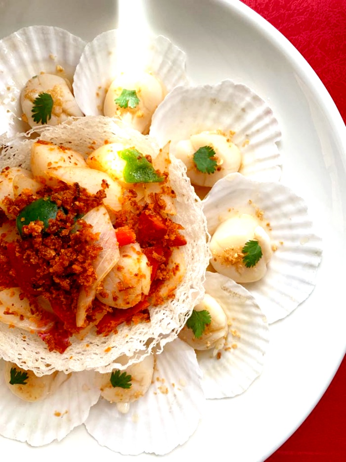 带子、虾球、沙蚝伴、火鸭、西兰花