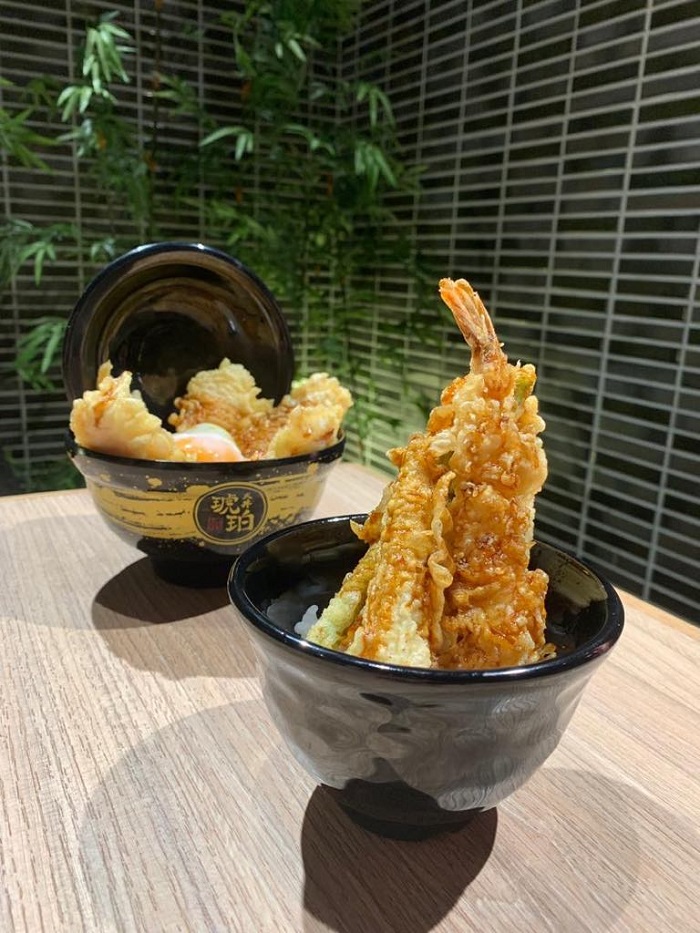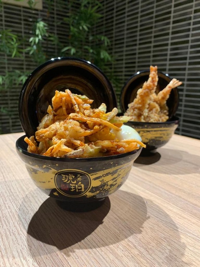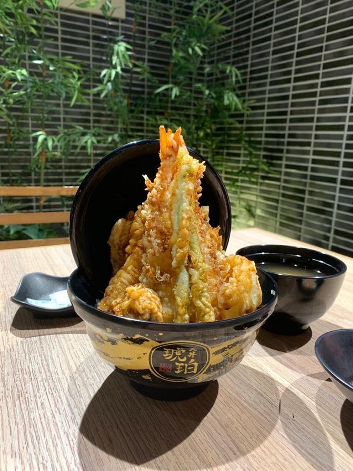 食物的摆盘相当有趣,在装满饭和天妇罗的碗上还竖着另一个盘子,其实那个盘子就是让你在吃的时候,可以把天妇罗放在盘子上,那么就不会显得狼狈,也不会把食物掉在桌子上咯!Tendon Kohaku最大的优点就是天妇罗酥脆得来又不会有油腻感,主角是海鲜,但是让我们更惊讶的是即使连炸南瓜也可以那么好吃!一个厨师的好功夫就是看这些小细节了,任何的食材都能够保持它的鲜味,又不失品牌的特色。