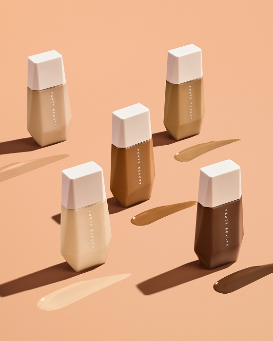 这既是一款润色霜也是一款裸感粉底液,怎么说呢?它的质地非常轻薄水润,中低遮瑕度(肤色好的妹子一定love),上脸的妆感是非常柔焦的雾光感,更适合平时不喜欢厚重妆感的裸妆爱好者。美编觉得当作润色提亮用途也挺合适,创办人Rihanna直接推出25个色号,任何肤色都承包就对了!