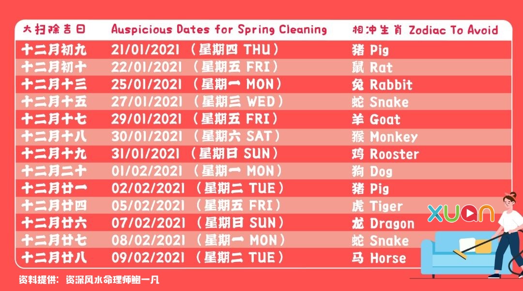 是时候选个吉日,给家里里里外外做大扫除,去旧迎新也好好给家里布置一下。往下,我们就看看2021年的大扫除吉日: