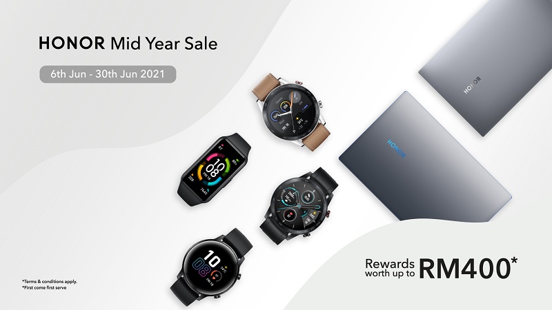 从6月6日至30日在HONOR全国旗舰店、授权经销商以及Lazada和Shopee展开促销活动,HONOR的年中促销还送出高达RM400礼品!