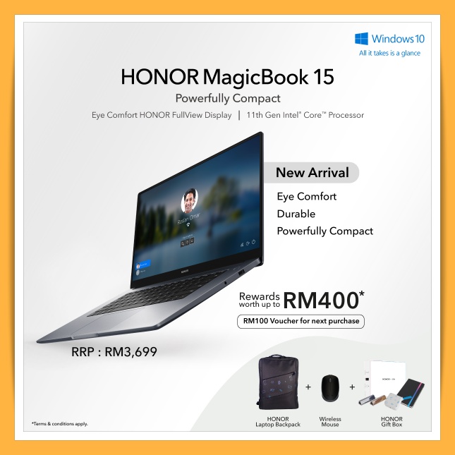 HONOR MagicBook 15 =RM3699 赠送RM400礼品