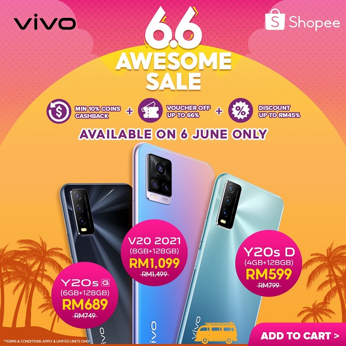 要买手机可是预算在RM1500之内?那可以到Shopee的vivo官方网站购买vivo V20系列,V20的优惠价是RM1099,折扣了RM400,至于V20Pro也是享有RM400折扣哦!