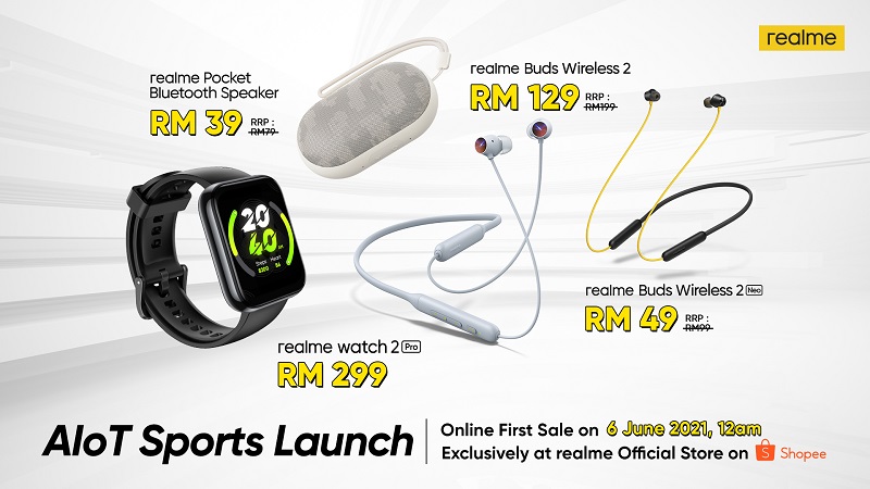 realme之前发布了4款AloT运动新品,分别有蓝牙音箱、智能手表和智能耳机,在6月6日的Shopee售卖会中,蓝牙音箱只需RM49就可以购买哦!