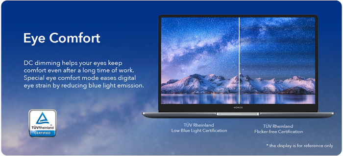 HONOR MagicBook 15拥有15.6寸的护眼全面屏,1920X1080解析度,还获得了德国莱茵低蓝光和无频闪护眼认证,可减少50%的蓝光,有效保护使用者眼睛的健康,即使长时间对着电脑屏幕,眼睛也不会感到疲累和不适。HONOR MagicBook 15更是同等价位中,唯一拥有100% sRGB色域及护眼模式的笔电,再加上其全铝合金机身,通过了实验室的多种严格专业测试,耐刮耐用,物超所值。