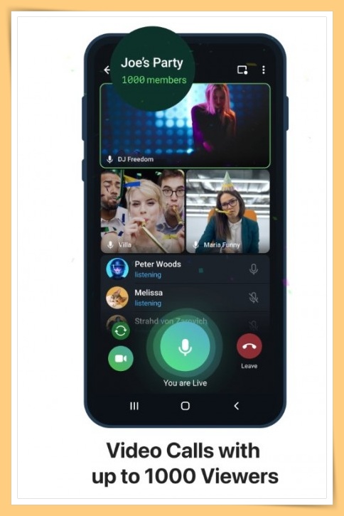 Telegram的群组视频通话功能推出更新,最多有30名参与者的视频通话可以分享他们的摄像头信号和屏幕内容,最多还可以容纳1000名的观众。你没看错,是一千人哦!