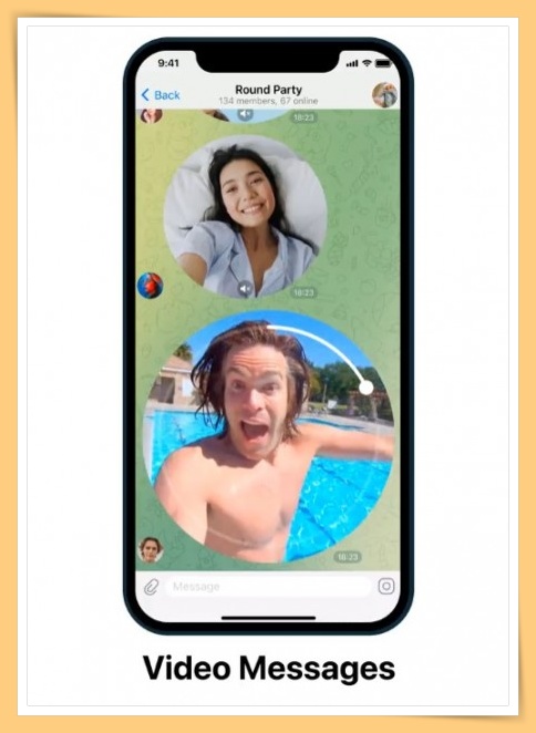 视频信息功能更新后,其经典的圆形视频信息现在分辨率更高,可以点击信息来展开圆形视频,还可以暂停和刷新视频信息,录制语音信息时背景音频也不会暂停。