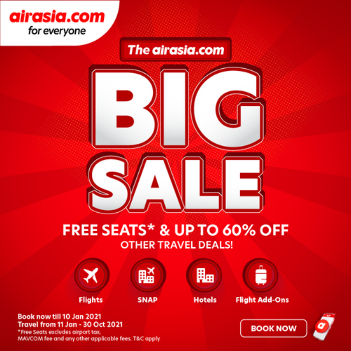 感兴趣的群众可从即日起至 10.1.2021 期间在 airasia.com 上订购优惠机票,出发日期为 2021 年 1 月 11 日至 2021 年 10 月 31 日!