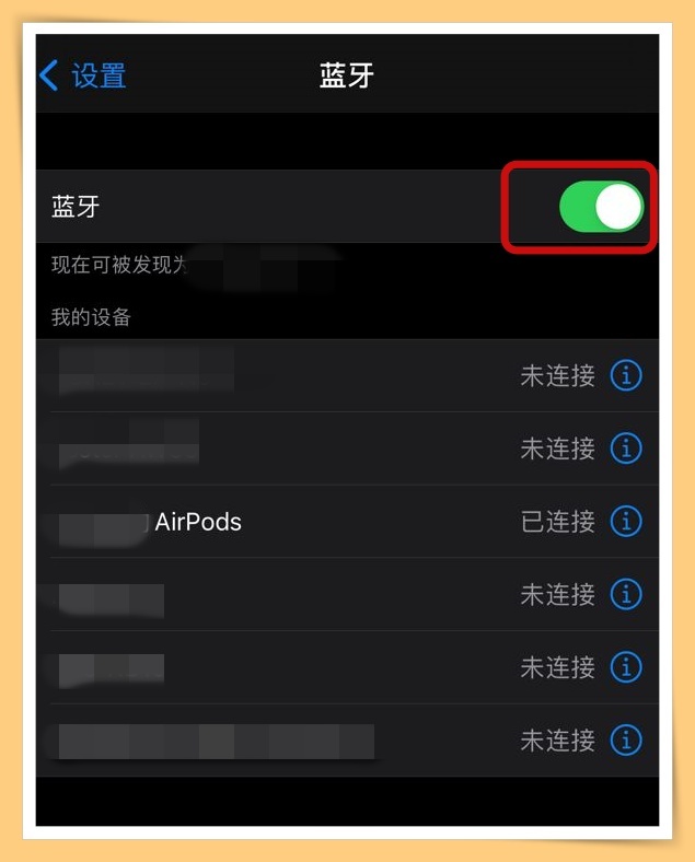 ✅ 开启iPhone上的「设置」>「蓝牙」,