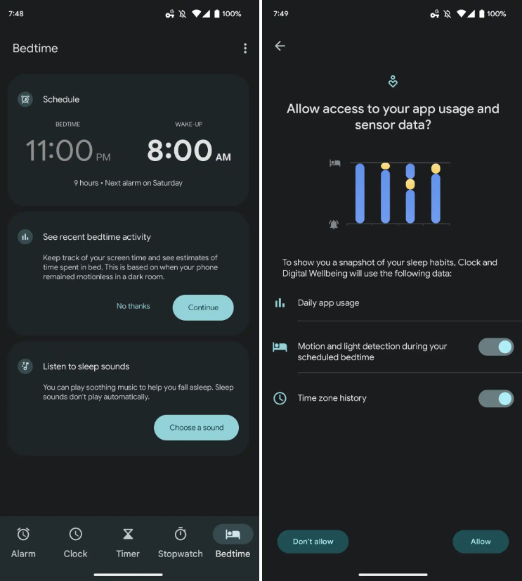 ✅需手动启用打鼾和咳嗽检测,并允许麦克风访问,这个功能将与现有的 Google Clock 整合,后者可以根据手机在黑暗环境的静止时间来判断用户的睡眠时间。
