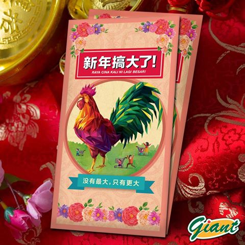 Giant在鸡年推出过一款“新年搞大了!没有最大,只有更大”的红包封,虽然有特别,但一些网友吐槽:还以为是搞大肚子了!