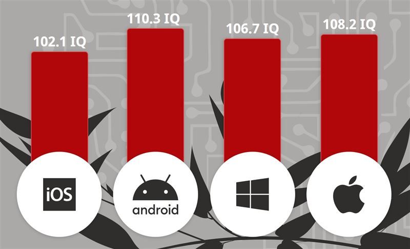 不过在PC平台则是相反,使用苹果Mac电脑的用户平均智商为108.2,略高于微软Windows作业系统用户的106.7。