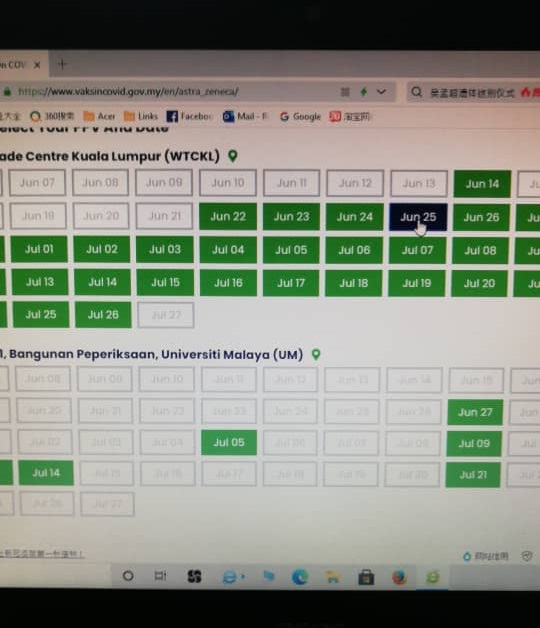 进入到日期选项的话,说明你离预约还差一步而已,这时候如果满额的话又要重新登记,OMGGGGG!!建议你先设定好日期,最好以星期几为标准,比如说星期一或二,就每次尽量选择这两天的日期。当然,小编觉得盲选比仔细看日期几率更高,毕竟预约疫苗这事讲的就是手速,你迟疑一秒就被别人抢先一秒。