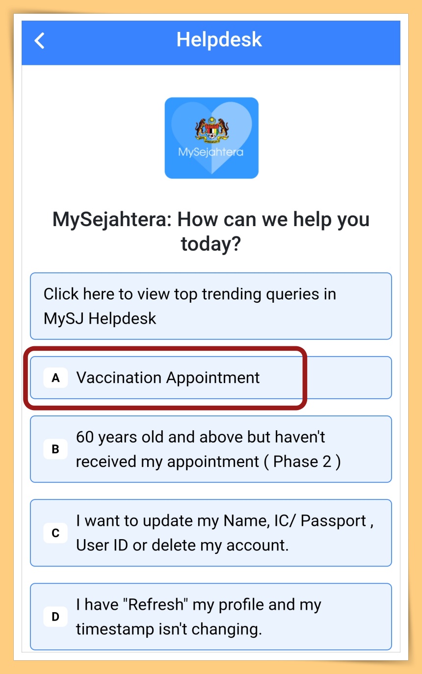 新冠疫苗供应特别委员会(JKJAV)发消息指出,MySejahtera将开放让卧病在床的人士可以要求提早在家接种疫苗。如果家人或身边朋友有这个需要,可以这样申请。