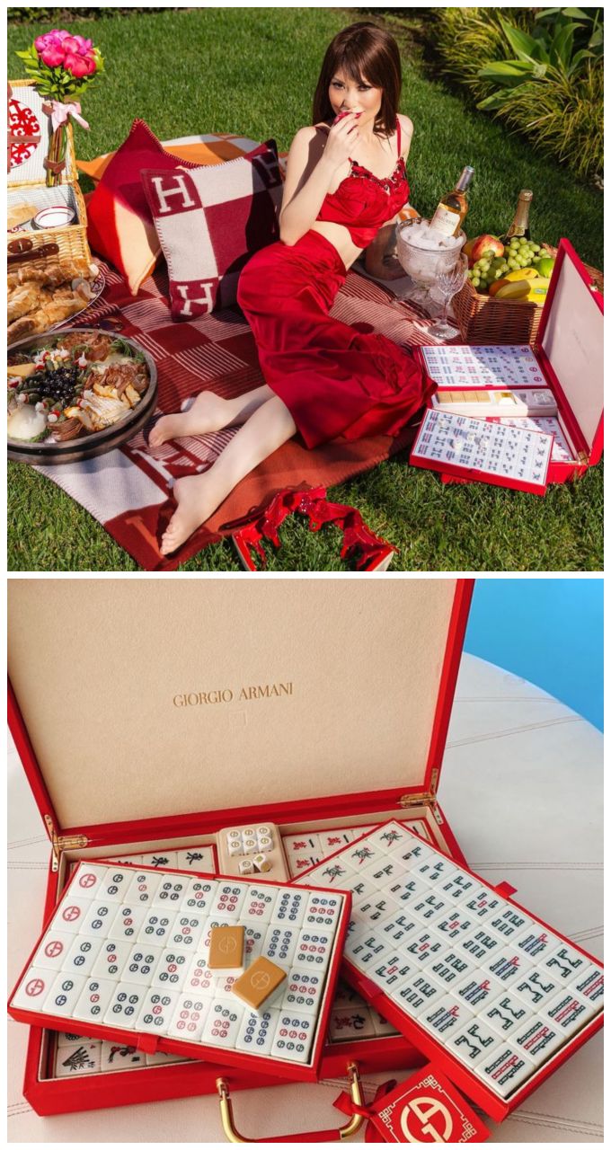 ⬇️ 在家要躺就躺爱马仕的抱枕,要打麻将就要打Giorgio Armani的麻将啊!